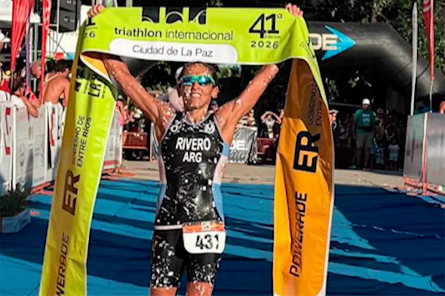 La triatleta entrerriana María Victoria Rivero, ganadora del Triatlón de La Paz, celebró con Elonce su segundo triunfo en la competencia, destacando la pasión de la ciudad y la dedicación de su familia y equipo de apoyo.