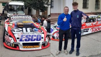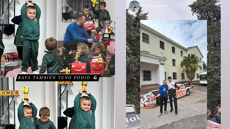 El "Zorro de Paraná" también publicó en su Instagram el momento que compartió. Se lo vio a su hijo emulando al padre, como si estuviera festejando en un podio de carreras.