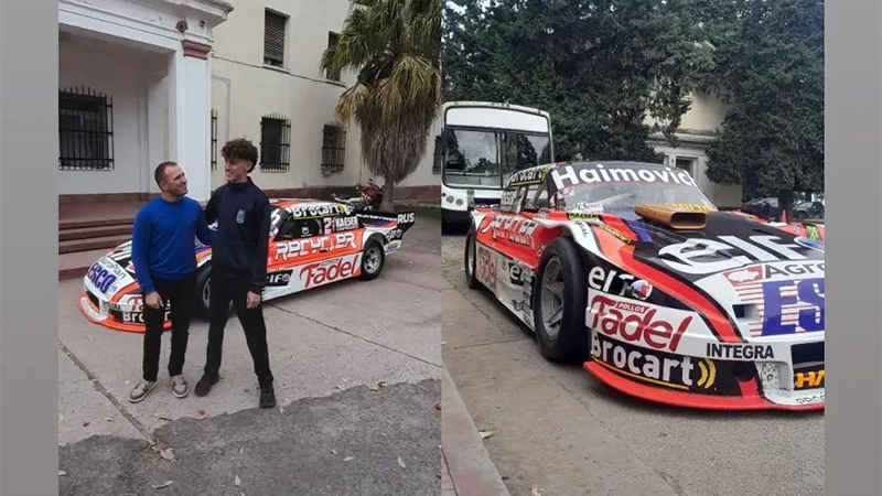 A través de las redes sociales, se difundieron las imágenes. Tanto el colegio como alumnos mostraron la presencia del entrerriano y su auto de TC.