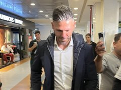 Demichelis llegó a Ezeiza en horas de la mañana, donde se tomó fotos con hinchas que se sorprendieron por su presencia pero evitó brindar declaraciones hasta la presentación oficial como técnico del "Millonario".