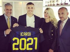 En una galería del centro de Milán, donde los aficionados también pudieron compra la camiseta oficial con el numero 9 y el nombre de Icardi, el club anunció el contrato del jugador argentino con notables mejorías, tras una ardua negociación de la entidad con la mujer y representante del jugador, la modelo Wanda Nara.