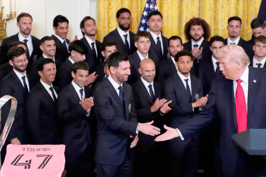 “Hoy estamos encantados de recibir a los campeones de la Copa MLS 2025, Inter Miami... y es un gran privilegio para mí decir lo que ningún presidente estadounidense ha tenido la oportunidad de decir antes: ¡bienvenido a la Casa Blanca, Lionel Messi!”, fue la bienvenida que le brindó el máximo mandatario estadounidense, quien recibió una pelota firmada por el capitán argentino y una camiseta rosa del Inter Miami con el dorsal 47. Ese número se refiere a que Trump es el 47º presidente de los Estados Unidos de América.