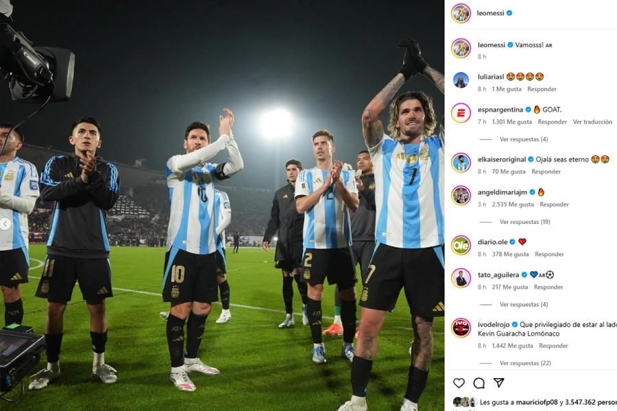Lionel Messi sumó un puñado de minutos en el triunfo de la Selección Argentina por 1-0 sobre Chile en el estadio Nacional de Santiago en el marco de la fecha 15 de las Eliminatorias Sudamericanas rumbo al Mundial 2026. Tras la victoria, compartió una publicación en su cuenta de Instagram.