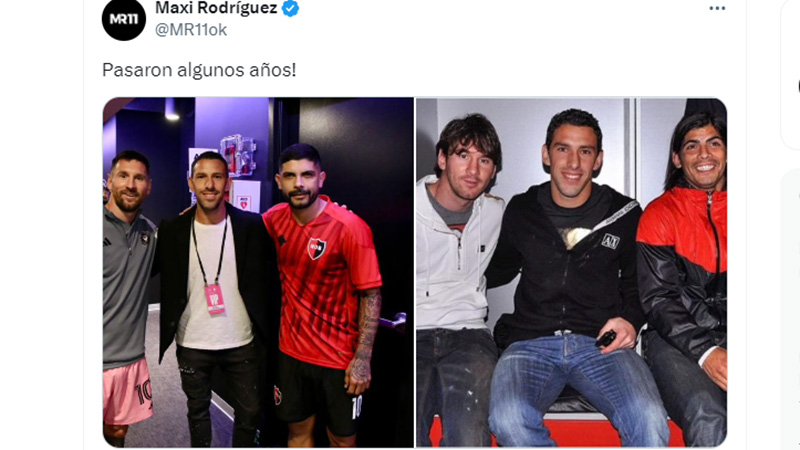 "Pasaron algunos años", publicó Rodríguez tanto en su cuenta de X como en Instagram junto a dos imágenes. La primera fue la tomada el jueves, en la que posó junto a Lionel Messi y el actual ídolo de Newell's, Ever Banega.