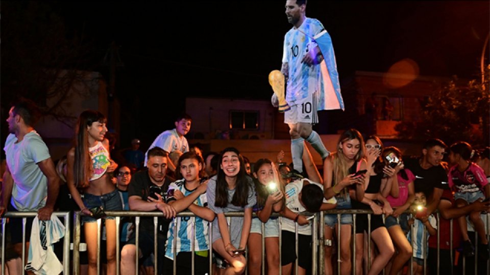 Numerosos hinchas de la selección enfundados en camisetas argentinas, de Rosario Central y Newell's Old Boys se agolparon esta tarde frente al ingreso a la fiesta, sobre la calle Moreno, y observaron detrás de las vallas metálicas el ingreso de los invitados, quienes eran recibidos por empleados de seguridad vestidos con una remera negra con una inscripción en la espalda: "Campeones del Mundo".
