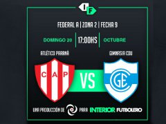 Atlético Paraná buscará su primera victoria en la presente edición del Torneo Federal A, cuando reciba en el estadio Pedro Mutio a Gimnasia y Esgrima de Concepción del Uruguay, mañana a partir de las 17.00, en el marco de la Fecha 9 correspondiente a la Zona 2.