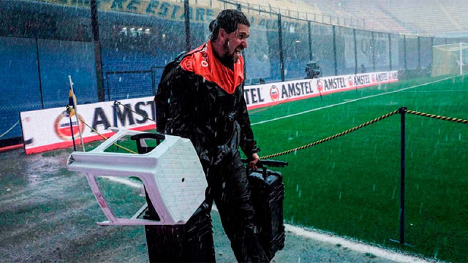 Las autoridades de Conmebol recorrieron el campo de juego de La Bombonera y decidieron postergar el partido debido a la cantidad de agua acumulada en el campo de juego. Se juega mañana a las cuatro de la tarde.