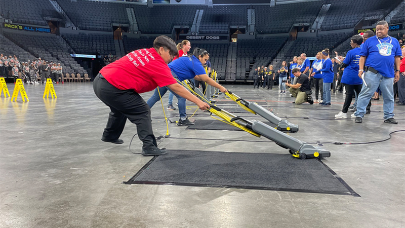 Participantes llegaron de todas partes de América del Norte para demostrar sus habilidades domésticas en el Mandalay Bay Michelob Ultra Arena, el que se convirtió en un campo de batalla de escobas, camas, aspiradoras y cubetas para trapear.