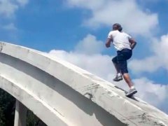 Otra locura de Marcos Di Palma: Esta vez, corrió sobre la estructura de un puente