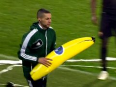 Ahora, en la revancha disputada en su casa, los hinchas volvieron a posarse en el centro de la escena por tristes acciones. Fue a los 38 minutos cuando el árbitro se vio obligado a detener el juego por un repudiable acto de racismo: le arrojaron una banana inflable gigante al marfileño Gervinho cuando este se disponía a realizar un lateral.