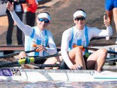 A mitad de los 2000 metros, la situación se mantuvo sin cambios: las canadienses comenzaron a perder terreno, mientras la remera del Paraná Rowing Club y su compañera intentaban meterse en la pelea por la medalla de bronce.