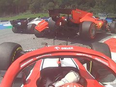 Una mala maniobra de Leclerc, que quizo superar a su compañero Vettel, terminó de la peor manera para la escudería italiana. En zona de boxes, Vettel se mostró muy ofuscado por el incidente y se sacó cualquier tipo de responsabilidad.