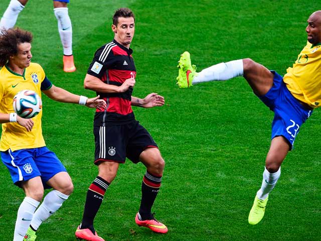 En un duelo vertiginoso desde el minuto cero, el conjunto Alemán pegó rápido de la mano Thomas Müller. El tanto del delantero del Bayern Munich llegó a los 10 de la primera etapa y ahí arrancó la catarata de goles: a los 22, Miroslav Klose marcó el histórico tanto, a los 24 y 25, Toni Kroos aumentó la diferencia y tres minutos más tarde Sami Khedira puso el 5 a 0, resultado con el que se irían al descanso.