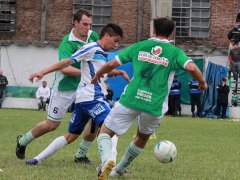 Maximiliano Zampieri e Iván Aguilar (dos veces), marcaron los goles del equipo de Omar Verón, mientras que Rubén Marín y Hernán Claro lo hicieron para la V azulada. El tercer partido y definitivo se jugará dentro de siete días en el estadio de Atlético María Grande.