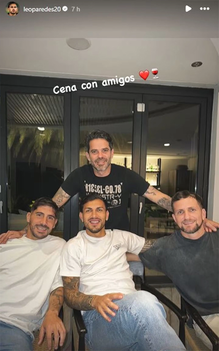 En su cuenta de Instagram, Paredes compartió una imagen acompañado de Fernando Gago, Cristian Erbes y Nicolás Colazo, todos surgidos de las divisiones inferiores de Boca. “Cena con amigos”, escribió el jugador, alimentando los rumores sobre un posible acercamiento con la dirigencia azul y oro.