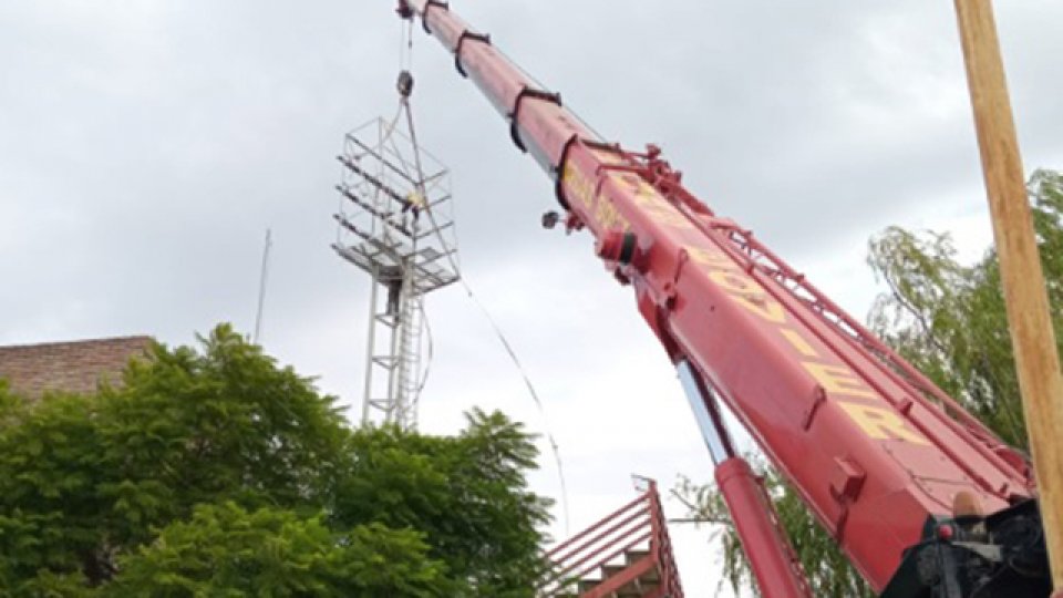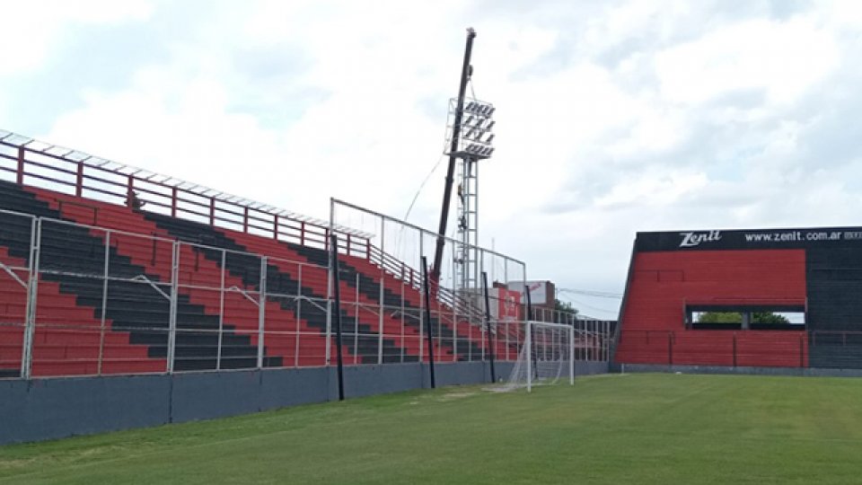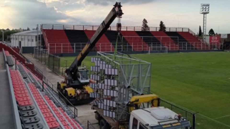 La dirigencia de Patronato sigue con las refacciones al estadio Presbítero Grella, para el debut en la Copa Libertadores. Este martes iniciaron la instalación de las columnas de iluminación, que complementarán a las existentes.