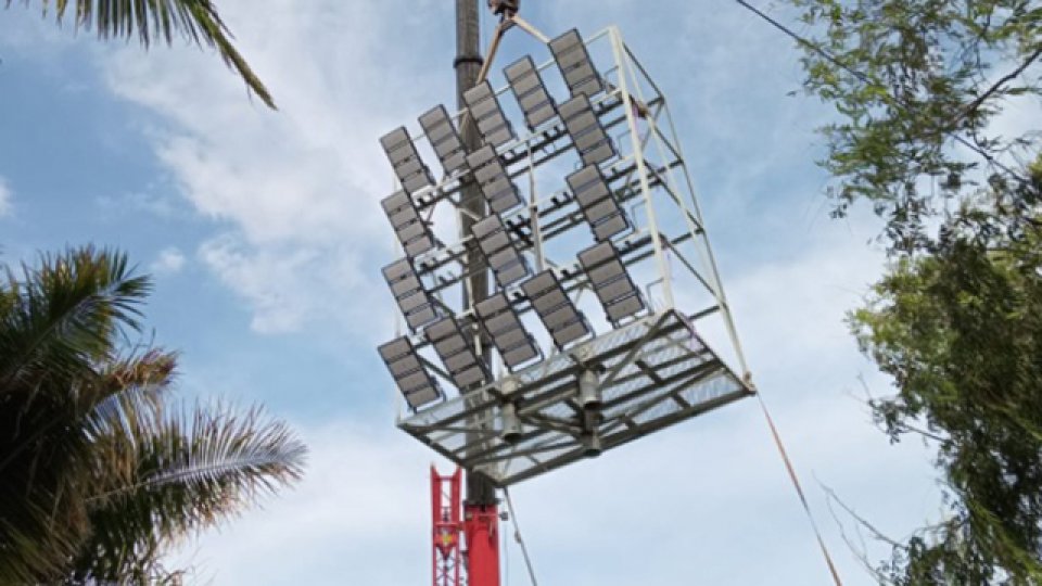 Uno de los pedidos de Conmebol, tiene que ver con la iluminación del recinto. Por ello, este martes comenzaron la instalación las nuevas columnas de iluminación, que complementarán a las originales.