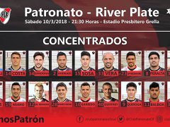 El entrenador de Patronato, Juan Pablo Pumpido, definió la lista de futbolistas que estarán concentrando de cara al choque frente a River Plate, que se jugará mañana desde las 21.30 en el estadio Grella. Entre las novedades no estarán ante el Millonario Rodrigo Arciero ni el paraguayo Blas Cáceres. Por su parte, Agustín Guiffrey formará parte de los elegidos para concentrar.