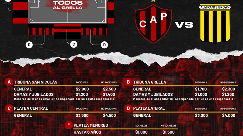 Patronato recibirá este miércoles a partir de las 17:10 horas a Almirante Brown en el estadio Presbítero Bartolomé Grella, en el marco de la fecha 10°, fecha reprogramada del Torneo Primera Nacional 2023. Al respecto, se informó al público en general sobre el procedimiento en la venta de entradas.