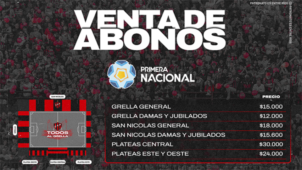 El Club Atlético Patronato informó el lanzamiento de un nuevo abono para asistir a los doce encuentros restantes que el Rojinegro tiene en condición de local en el Torneo de Primera Nacional 2023.