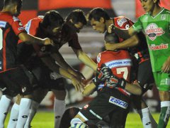 Ya en la primera etapa, fue el elenco local quien manejó las acciones del juego, Arraya lo tuvo en el arranque sólo frente al arco de Pozo y su remate se fue desviado. El dominio del Rojinegro se acrecentaba y Leonardo Acosta tuvo su chance casi en 20 minutos, dando su remate en el palo. Sobre el final, Juan José Arraya quedó mano a mano con el arquero visitante, tras un error de Borzani, y su remate se fue apenas desviado.