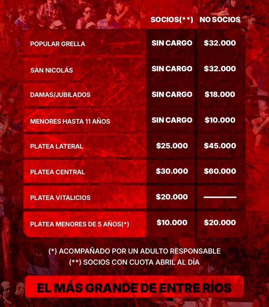 En tanto, para “No socios” ( tribunas Grella/San Nicolás y plateas), se debe ingresar a https://patronato.global.fan/eventos y seguir los pasos, para adquirir las entradas.