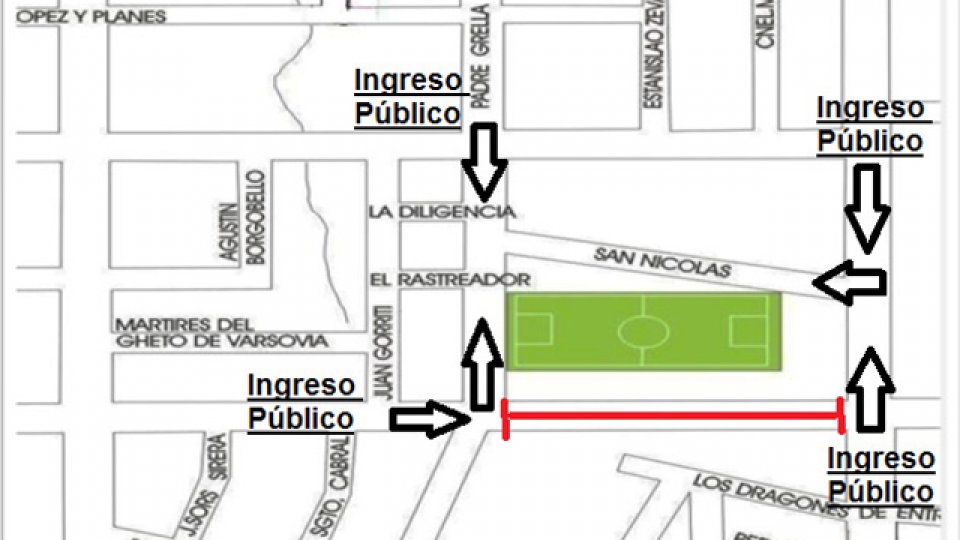 A los fines de facilitar la dinámica de ingreso de las personas que concurran al estadio, se ha dispuesto que las mismas puedan hacerlo por calle Grella (proveniente de Churruarin o de Alte. Brown) y por calle San Nicolás (proveniente de Ayacucho), reiterándose la concurrencia Documento Nacional de Identidad.