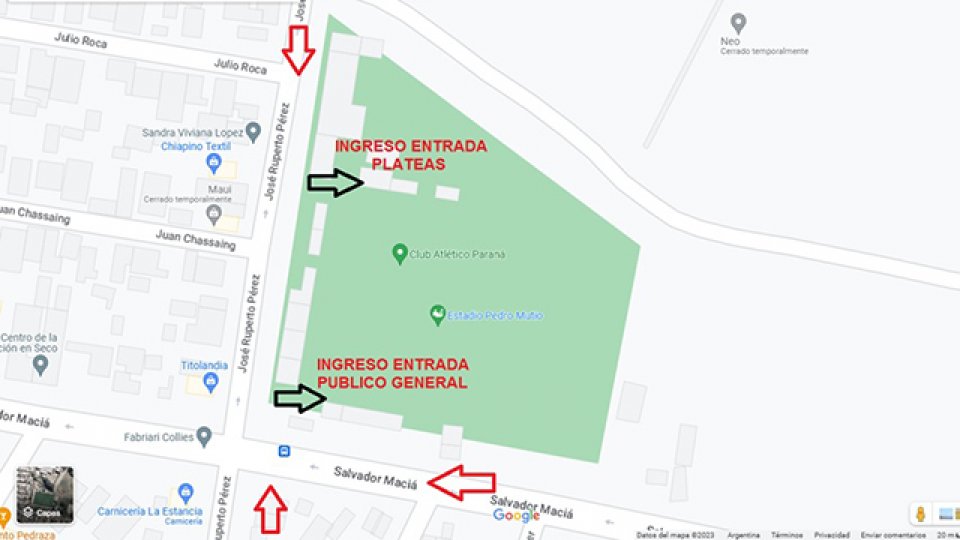 Habrá un pre control de entrada y documento bajo el programa Tribuna Segura para aquellas personas que concurran al estadio, los cuales estarán ubicados en Ruperto Pérez y Macia y Ruperto Pérez entrada principal.