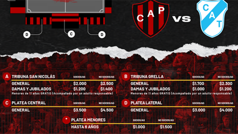 Cabe destacar que los <b>menores hasta 11 años entrarán gratis</b> a las tribunas San Nicolás y Grella.