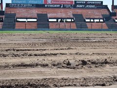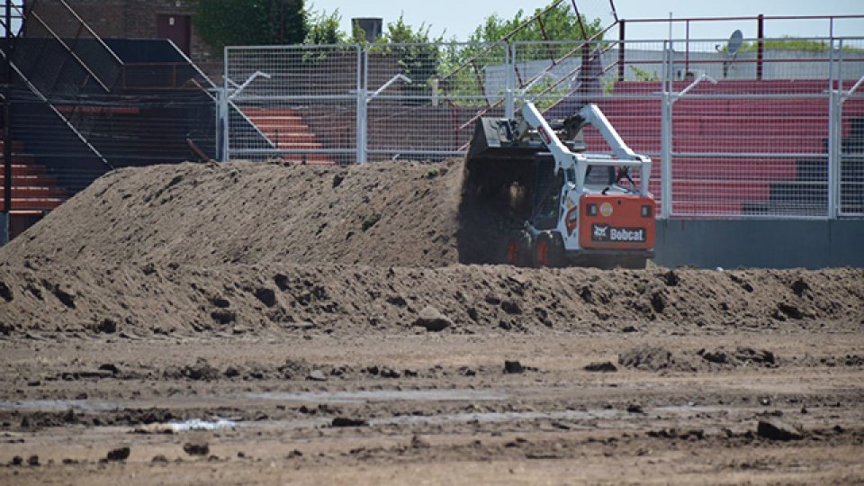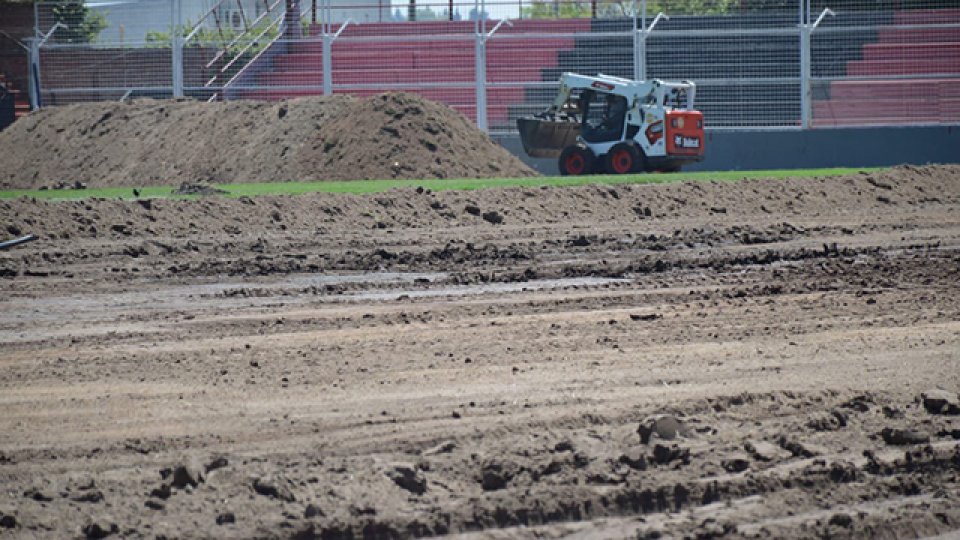 Esta viernes por la mañana se dio inicio a los trabajos de nivelado de la cancha a cargo de la labor de la empresa "Servicios Pedrin". En las próximas horas se colocarán nuevamente los panes de césped extraídos con la colaboración de los hinchas rojinegros en conjunto con los empleados de la institución.