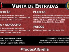 Por medio de la cuenta oficial de Facebook, el Departamento de Prensa de Patronato informó los precios y dias de venta de las entradas para el encuentro por la 21° jornada de la Superliga.