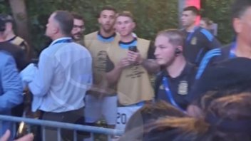 Un nutrido grupo de auxiliares de la Asociación del Fútbol Argentino debió acercarse hasta las puertas de acceso del HardRock Stadium para rescatar a la familia de Montiel, Enzo Fernández y Mac Allister.