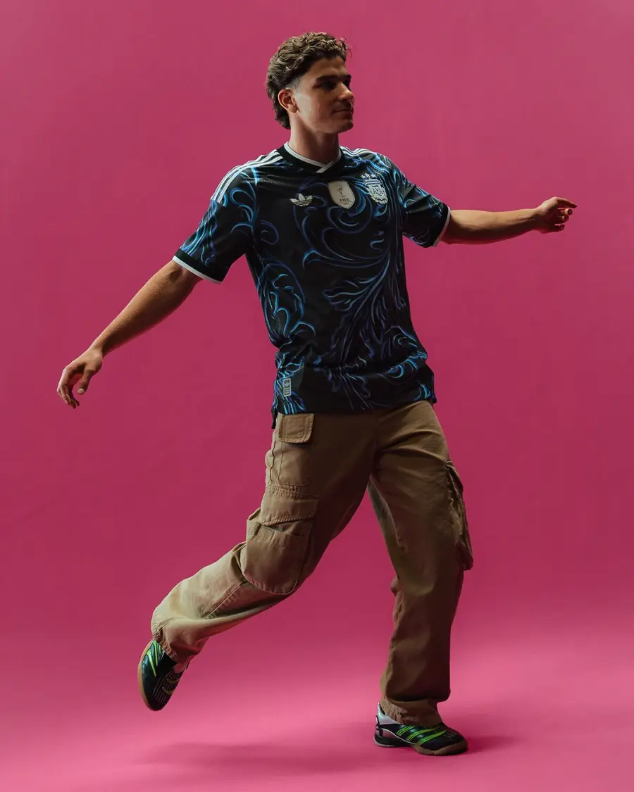 El diseño de la camiseta presenta una base de color negro con detalles en azul, celeste y blanco, que “celebra las diferentes expresiones culturales que existen a lo largo y a lo ancho de nuestro país”. La nueva camiseta estará a la venta a partir de este viernes en los locales de Adidas y en plataformas en línea.