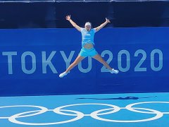 Un rato antes, la rosarina Nadia Podoroska se impuso frente a la rusa Ekaterina Aleksandrova por 6-1 y 6-3 en una hora y 27 minutos de juego y avanzó a los octavos de final de la competencia de single femenino.