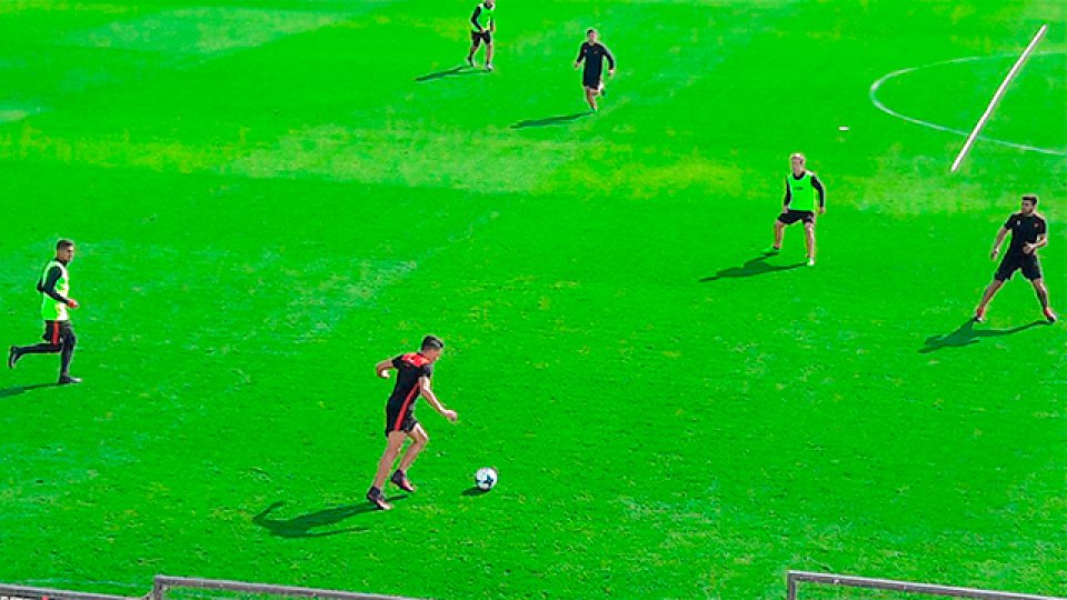 En la práctica, el DT apuntó a pulir los conceptos de tenencia de balón, la salida desde el fondo y, los movimientos que pretende el entrenador en la transición de líneas.
