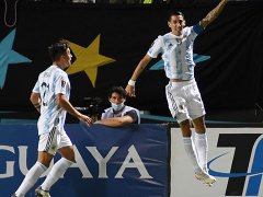 El encuentro en el estadio Campeón del Siglo de Montevideo fue extremadamente parejo y la Albiceleste lo definió con un soberbio gol de Di María, que portó la cinta de capitán ante la ausencia de Lionel Messi como titular. A los siete minutos, "Fideo" recibió de Paulo Dybala en el vértice del área, se acomodó y abrió el pie izquierdo para colocar la pelota en un ángulo.