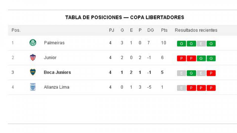 Como consecuencia de esta derrota, y el triunfo de Junior sobre Alianza Lima, el conjunto de la Ribera se ubica tercero, con 5 unidades (un triunfo, dos empates y una caída). Junior es segundo, con seis, y Palmeiras, ya clasificado, lidera el Grupo 8 con 10.