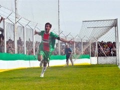 Gonzalo Urquijo, goleador de Agropecuario, celebra su tanto.