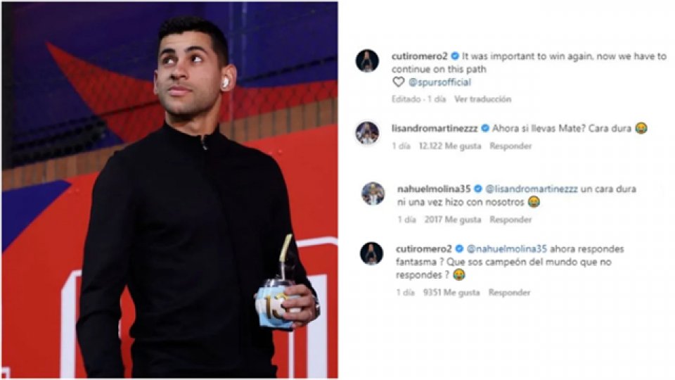 En esta oportunidad, Cristian "Cuti" Romero publicó las fotos del último partido del Tottenham en donde se lo puede ver llegando al estadio Selhurst Park con un mate argentino. A los pocos minutos, Lisandro Martínez, compañero en la defensa argentina, dijo presente y le escribió en tono de burla: "¿Ahora si llevás mate? Cara dura".