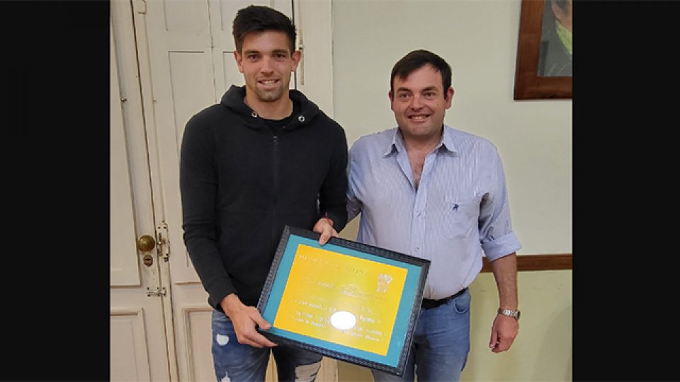 El Jefe Comunal le hizo entrega de un reconocimiento tras haber sido clave en la obtención del Torneo atajando penales contra River y Boca y venciendo en la final a Talleres de Córdoba.