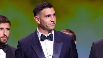 El premio para "Dibu" se lo entregó su padre Alberto, y el arquero se emocionó al decir que "el Gordo -por su padre- me sigue a todos lados desde muy chico y esto es una sorpresa y una emoción muy grande, pero no hubiese sido posible sin la ayuda de mis compañeros y cuerpo técnico de la Selección y Aston Villa".