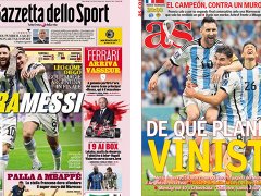 El astro rosarino Lionel Messi, genio y figura en el triunfo de Argentina sobre Croacia por 3-0 que clasificó al equipo a la final del Mundial de Qatar, acaparó hoy las portadas de los principales medios deportivos.