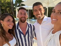 Antonela también subió otra foto durante las últimas horas en la que se ve a las cuatro parejas que protagonizan el viaje: Suárez está sentado junto a su esposa Sofía Balbi, mientras que otros de los integrantes de esa mesa fueron Cesc Fábregas y su esposa Daniella Saemaan, además de Mariana Balbi (cuñada de Suárez) y su esposo. La mesa tiene el hashtag "#NoHayVeranoSinBeso", y posaron para los flashes todos juntos y luego se juntaron las mujeres por separado.