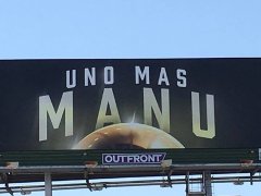 Emanuel Ginóbili. ayer por la tarde se reveló el cartel con la premisa "Uno más Manu" en una valla publicitaria cerca de la Interestatal 35 y la Avenida New Braunfels, en San Antonio.