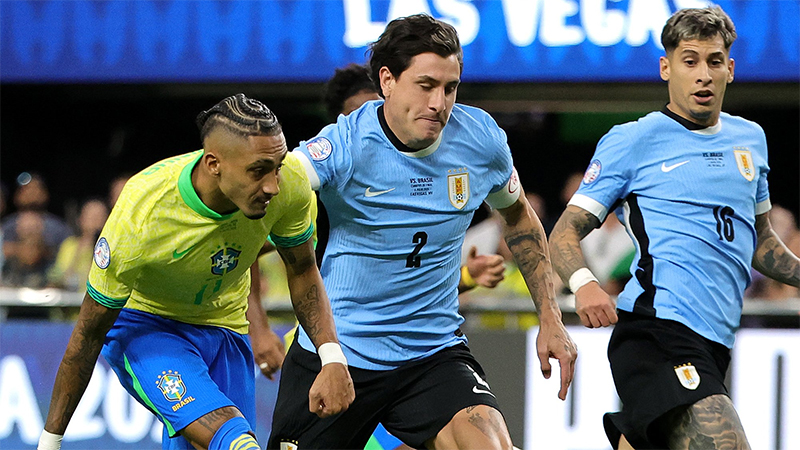Uruguay se quedó con diez hombres a quince minutos del final por la roja directa a Nahitan Nández, pero se defendió con orden y no concedió oportunidades a Brasil.