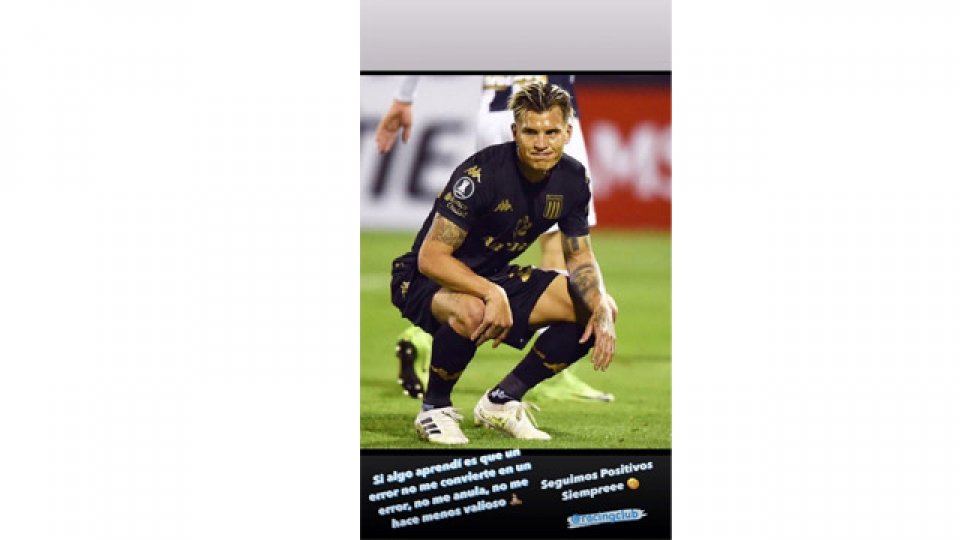 El entrerriano de Racing se pronunció luego de haber errado el penal ante Alianza Lima, publicando un mensaje en Istagram, donde se mostró fuerte a pesar del tropiezo. "Seguimos positivos siempre", posteó el oriundo de Villa del Rosario.