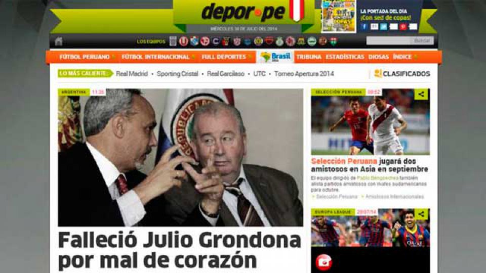 Por su lado, Libero (Perú), eligió publicar la información y una serie de tuits por parte de periodistas en donde expresan que Grondona deja un "legado controvertido".