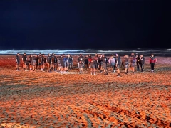 Se trata del entrenamiento en 'modo militar' que cada pretemporada realiza en la Costa Atlántica. Este lunes, el primero de los cuatro turnos de esa jornada especial se volvió a llevar a cabo de madrugada en el patio de un boliche, sobre la playa de la localidad balnearia de Pinamar, y donde los futbolistas trotaban mientras a escasos metros sonaba la música de moda a todo volumen.