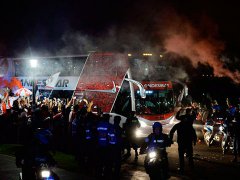 El equipo que dirige Marcelo Gallardo arribó este sábado por la noche a la capital entrerriana para enfrentar al Rojinegro. Hubo banderazo y un cálido recibimiento para el plantel Millonario que se instaló en el hotel del Parque Urquiza
