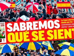 La prensa catalana, por su parte, privilegia la actuación mágica de Lionel Messi en la goleada 4-0 de Barcelona ante Espanyol. Pero le guarda a River-Boca su segundo lugar más destacado: las banderas de ambos equipos, de fondo el estadio Santiago Bernabéu y "Superclásico histórico". Así lo representa Sport.